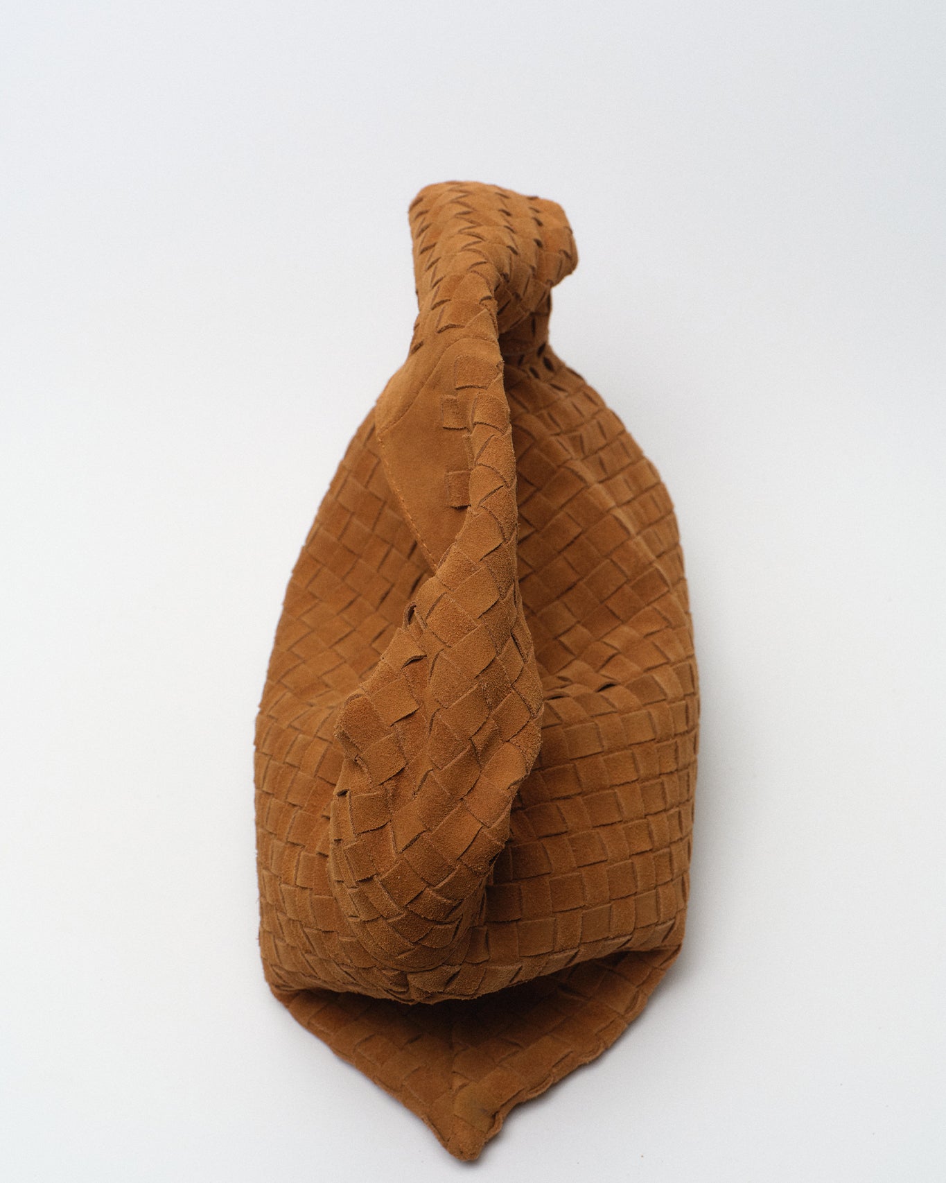 With its intricate woven suede design and relaxed silhouette, this shoulder bag brings a touch of understated elegance to any outfit.